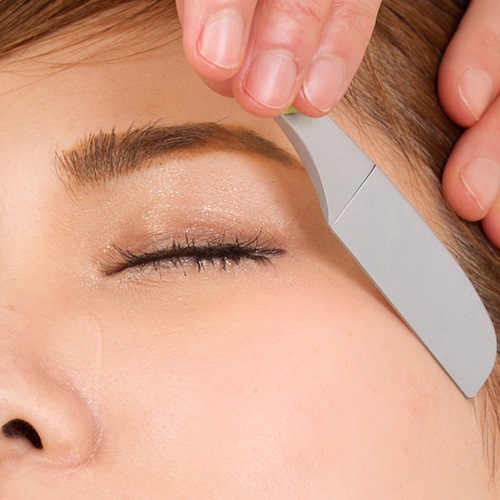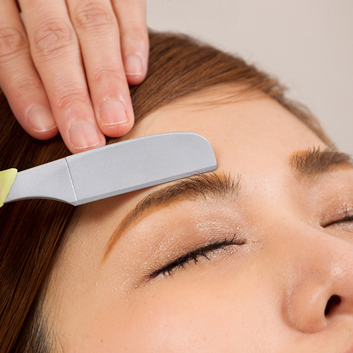 ※眉毛の周辺部位から眉頂点の成形まで、ミリ単位のシェービングとケアを施します。眉毛のクレンジング